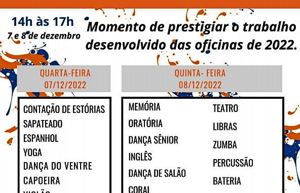 Serão apresentados os trabalhos realizados pelos frequentadores durante as oficinas do ano.