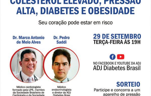 O encontro será pelo Facebook e YouTube da ADJ Diabetes Brasil, a partir das 19 horas e terá um sorteio de um aparelho de pressão, entre os participantes.