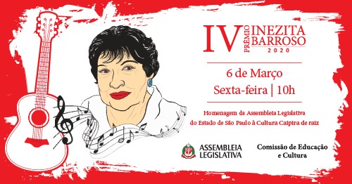 Começa amanhã a semana de homenagens da Assembleia Legislativa de SP para a saudosa cantora e compositora Inezita Barroso. A iniciativa da comissão de Educação e Cultura da Alesp, presidida pela deputada Professora Bebel abre amanhã uma exposição de fotos no 1º andar e na sexta-feira 6 de março, às 10h, será a sessão solene de entrega do IV Prêmio Inezita Barroso para artistas da Cultura Caipira de raiz homenageados por deputadas e deputados estaduais de São Paulo.