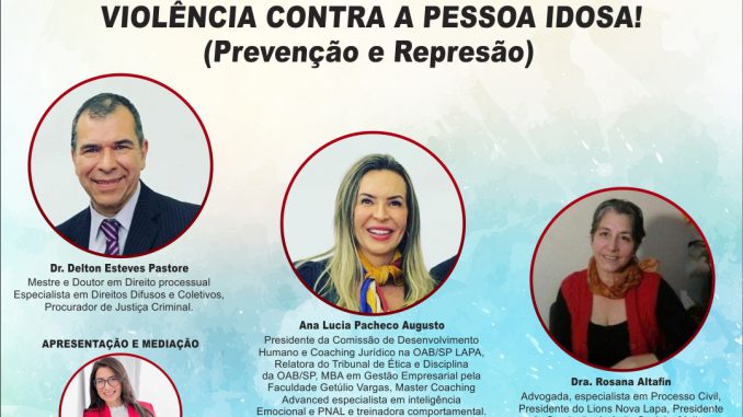 Violência Contra a Pessoa Idosa, Prevenção e Repressão é o tema do debate virtual na segunda-feira, dia 22 de junho de 2020, às 14h pela página do Facebook da OAB Lapa.