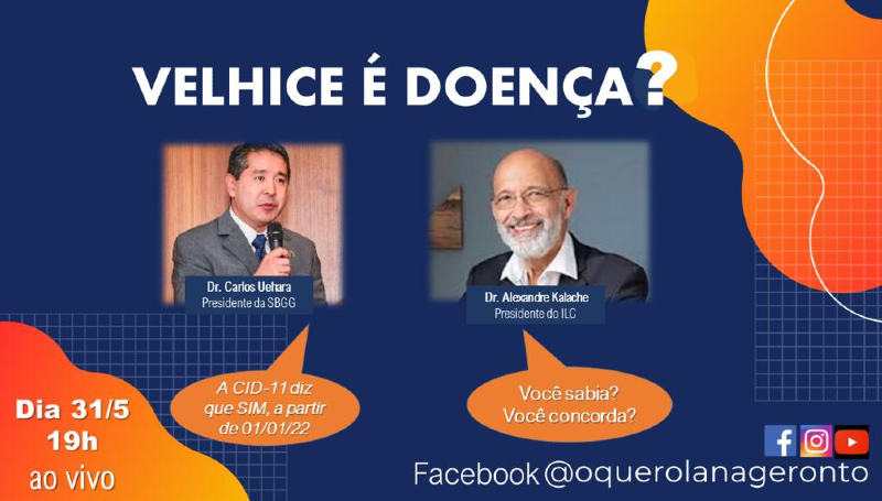 Velhice é doença é o tema do debate entre os médicos Alexandre Kalache, presidente do ILC- Brasil- Centro Internacional de Longevidade para o Brasil e Carlos Uehara, presidente da SBGG-Sociedade Brasileira de Geriatria e Gerontologia, no dia 31 de maio, às 19 horas.