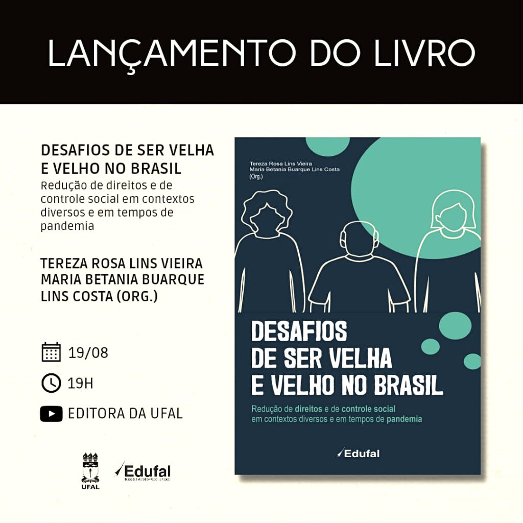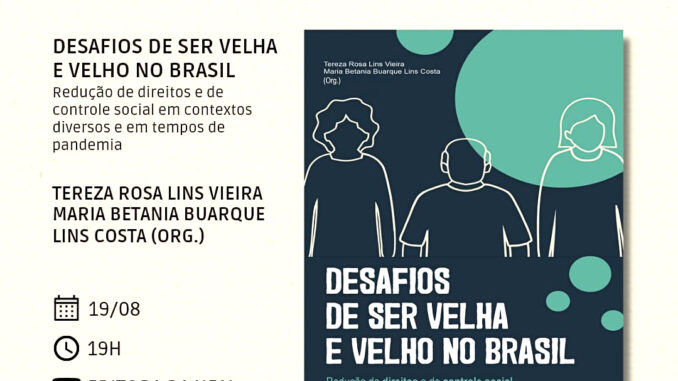Desafios de ser velha e velho no Brasil: redução de direitos e de controle social em contextos diversos e em tempos de pandemia é o título do livro virtual (e-book) que será lançado numa live amanhã à noite, 19/8. Pelo canal da editora da UFAL- Universidade Federal de Alagoas as pessoas poderão acompanhar e fazer perguntas.