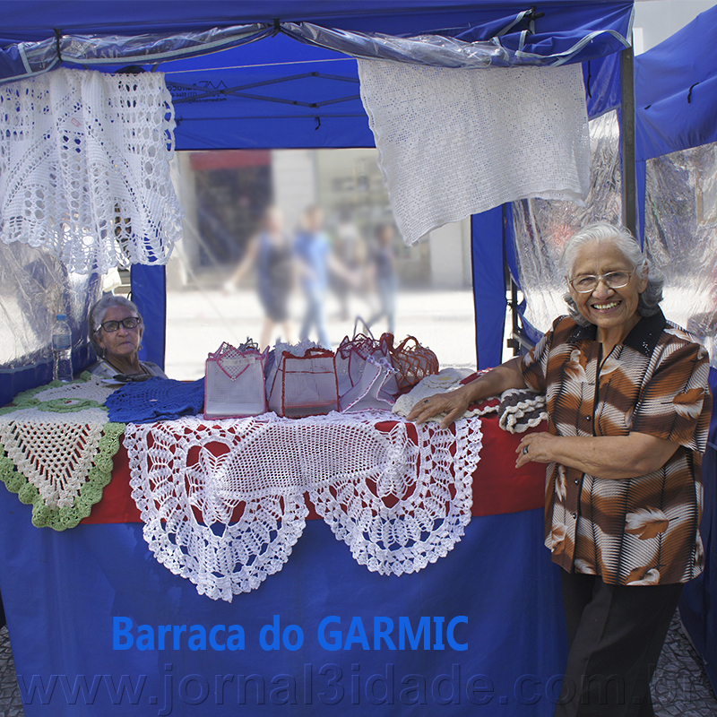 Barraca do GARMIC- Grupo de Articulação para Moradia do Idoso na Capital, com trabalhos de idosos, na 7ª Feira da Cidadania do Idoso, realizada em outubro de 2017. Foto: jornal3idade.com.br