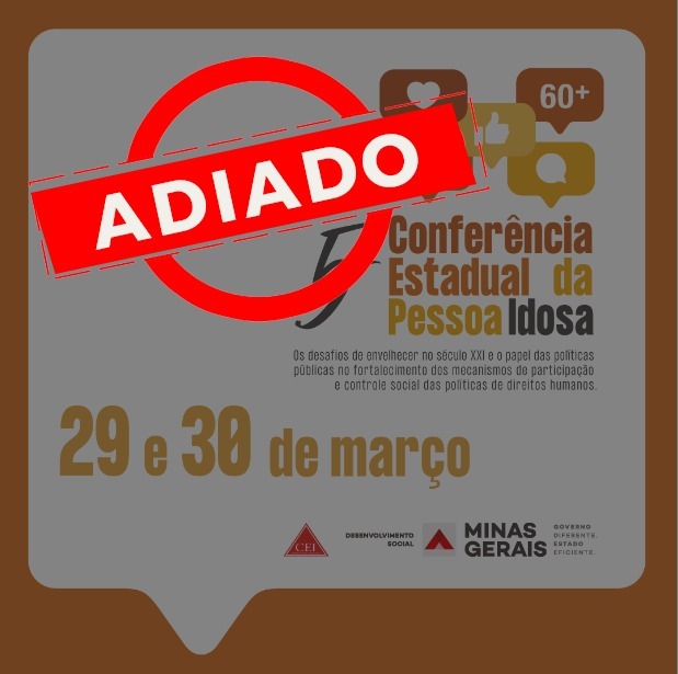 A 5ª Conferência Estadual da Pessoa Idosa de Minas Gerais que seria 29 e 30/3 foi adiada