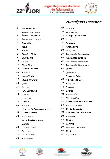 Municipios no JORI 2018 JOri 2018 Adamantina SP