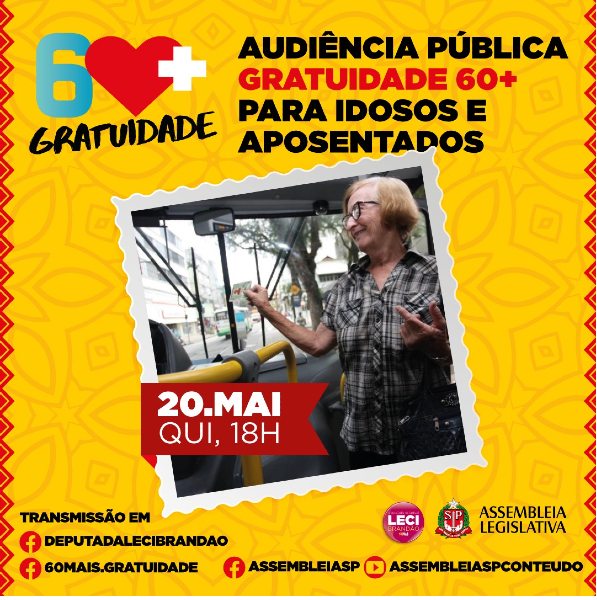A Alesp – Assembleia Legislativa de São Paulo vai realizar na próxima quinta-feira, 20 de maio, às 18 horas, uma audiência pública, sobre a gratuidade nos transportes públicos, para os idosos de 60 a 64 anos, que existia para todo o Estado desde 2013 e foi revogado pelo Governador João Dória, no começo de 2021.
