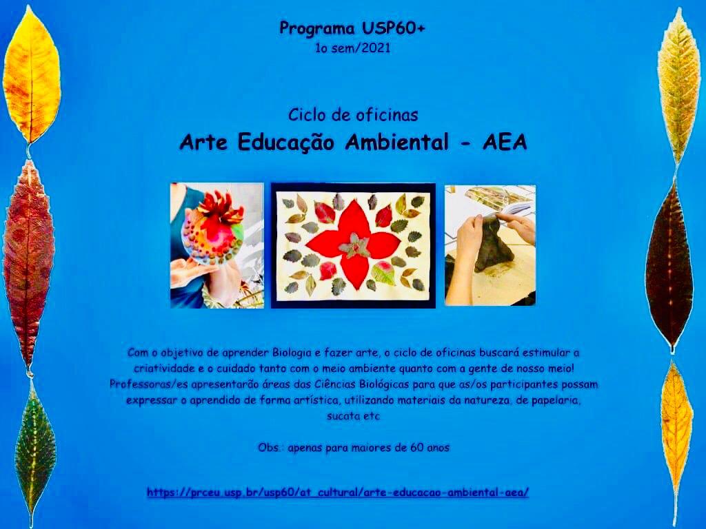 O ciclo de oficinas intitulado Arte Educação Ambiental – AEA, utiliza coisas da natureza, materiais de papelaria e sucata conta com professores para oferecer palestras de diversos campos das Ciências Biológicas.