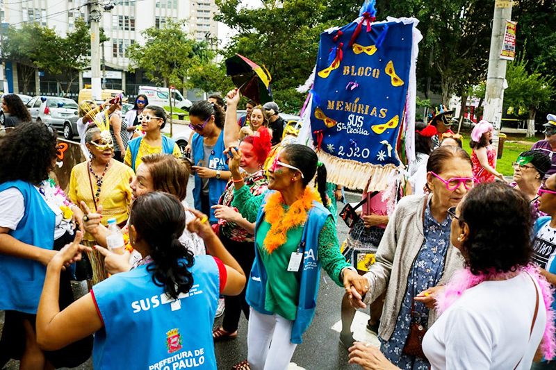 O Bloco Memórias SUS, iniciativa das equipes da UBS da Santa Cecília estreou hoje no Carnaval de São Paulo, com um desfile de trabalhadores da saúde e seus pacientes, em torno da unidade, na Região Centro da capital.
