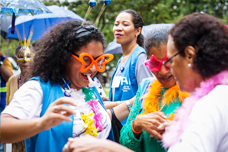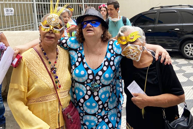 A iniciativa é fruto de um projeto com idosos da região e desafiou a chuva para colocar o bloco na rua pela primeira vez.