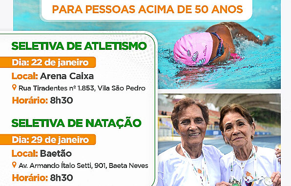 Na manhã do sábado, 22 de janeiro, na Arena Caixa, na Vila São Pedro, foi realizada a eliminatória para o atletismo, com a participação de 67 pessoas na faixa dos 50 aos 91 anos.