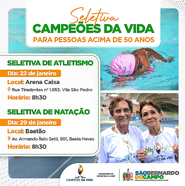 O programa Campeões da Vida, da Secretaria de Esportes, da Prefeitura de São Bernardo do Campo, para pessoas acima dos 50 anos, realizou suas primeiras seletivas visando os torneios de 2022.