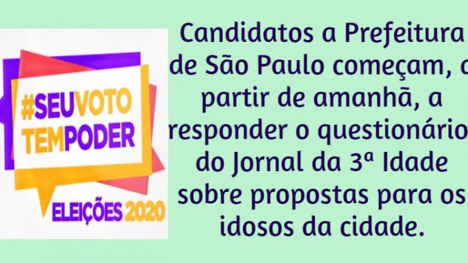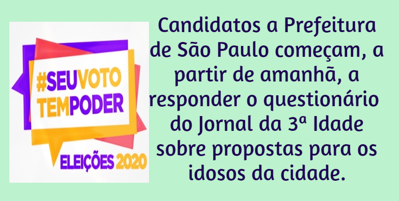 A partir de amanhã, terça-feira 27 de outubro, o Jornal da 3ª Idade começa a publicar as propostas que os candidatos a Prefeitura de São Paulo têm, para os mais de 2 milhões de eleitores com 60 anos ou mais.