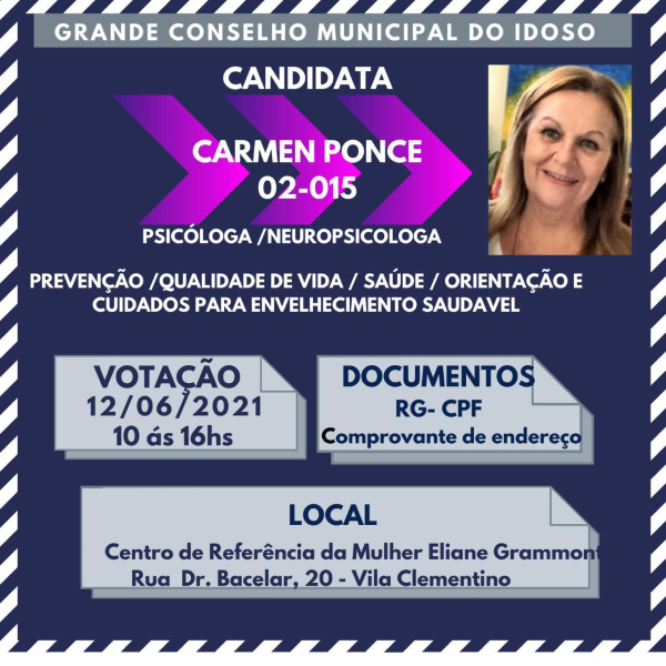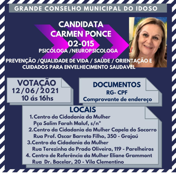 Carmen Ponce é candidata a conselheira no Conselho Municipal do Idoso de São Paulo
