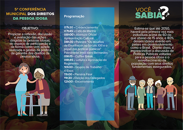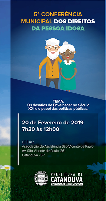 A 5ª Conferência Municipal dos Direitos da Pessoa Idosa de Catanduva, cidade a 384 quilômetros da capital paulista, na região noroeste do Estado, será no dia 20 de fevereiro, das 7h30 às 12h00, na Associação de Assistência São Vicente de Paulo.