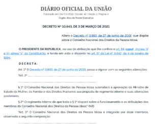 O governo federal publicou na manhã de hoje (4/3/2021) no Diário Oficial da União o Decreto nº 10.643, que reconfigura mais uma vez o Conselho […]