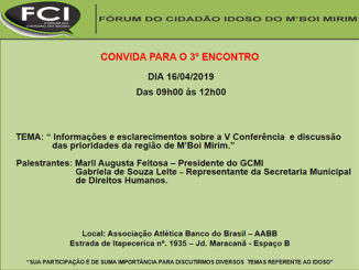 O Fórum do Cidadão Idoso do M´Boi Mirim, na Zona Sul da Capital marcou para o dia 10 de março seu segundo encontro de 2020, das […]
