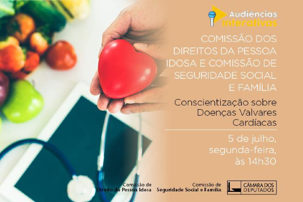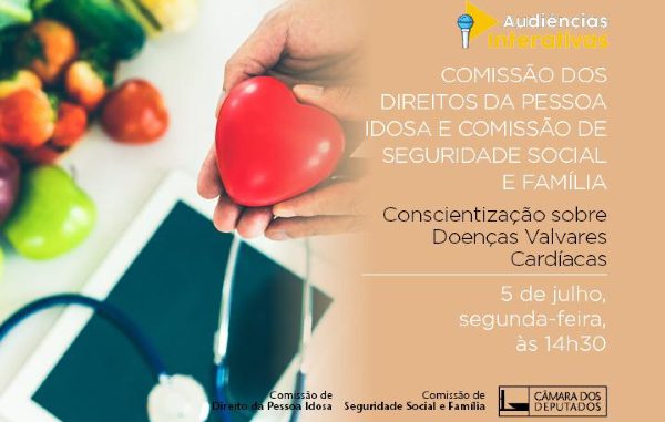 A CIDOSO – Comissão de Defesa dos Direitos da Pessoa Idosa realiza hoje audiência pública com a participação da Comissão de Seguridade Social e Família, a partir das 14h30, para debater “Conscientização sobre Doenças Valvares Cardíacas”, através do portale-Democracia.