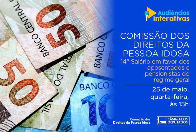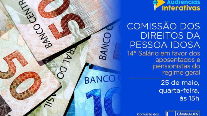 A CIDOSO-Comissão de Defesa dos Direitos da Pessoa Idosa da Câmara dos Deputados vai debater em audiência pública presencial, mas com transmissão interativa, na quarta-feira, 25 de maio, a partir das 15 horas, O 14º salário em favor dos aposentados e pensionistas em 2022.