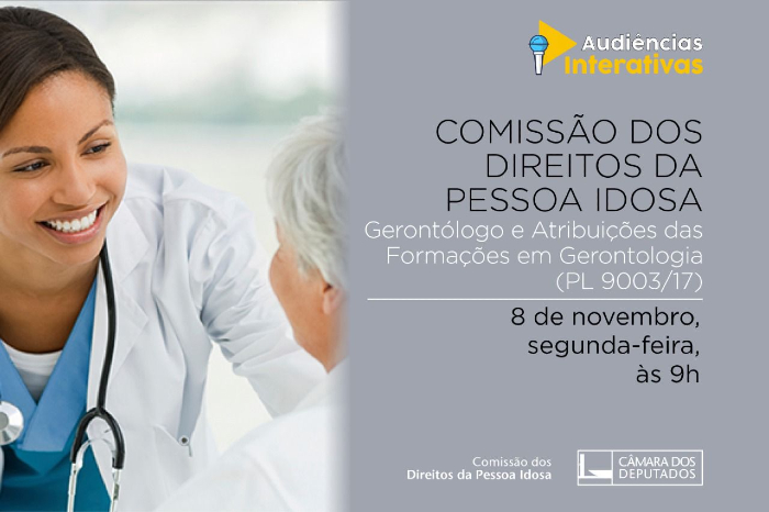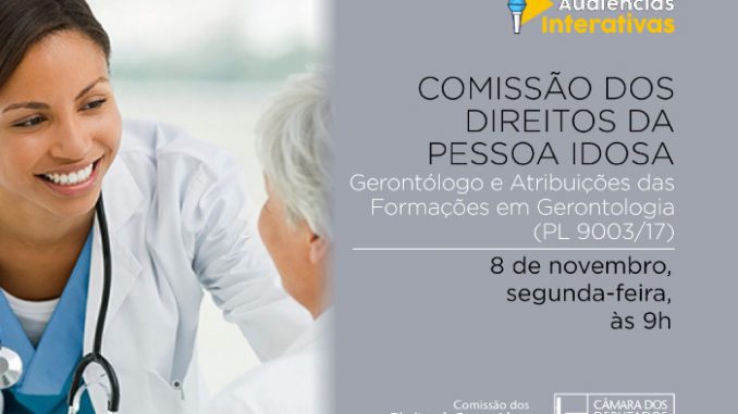 A CIDOSO – Comissão do Idoso da Câmara dos Deputados debate hoje, 8/11, em audiência pública virtual, as propostas de regulamentação da profissão de Gerontólogo e a instituição do Dia Nacional do Gerontólogo, a partir das 9 horas, pelo e-democracia.