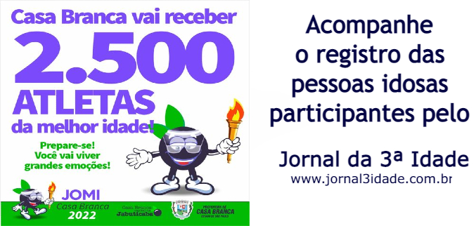 Com a disputa da modalidade Coreografia, que tradicionalmente abre as competições, começam hoje na cidade de Casa Branca, distante 229 km da capital, a 2ª etapa do JOMI 2022-Jogos Estaduais da Melhor Idade de SP. A abertura oficial será às 14 horas, no Ginásio Municipal de Esportes. Conhecida como a “Capital Nacional da Jabuticaba”, a cidade espera receber mais de 2500 pessoas, entre atletas, convidados e autoridades regionais.