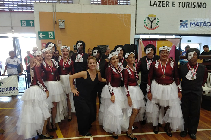 A coreografia de Cravinhos, como aconteceu no ano passado, foi coordenada pela professora, Andrea Gaspar Carrascosa, que também é a primeira-dama da cidade e desenvolve esse trabalho com idosos há 16 anos. O tema foi “O Fantasma da Ópera” e contou com 12 pessoas dançando, sendo 6 homens.