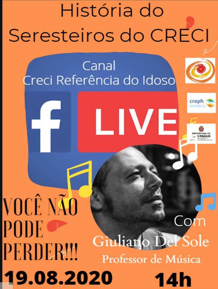 CRECI do Anhangabaú convida para uma tarde de música e histórias com seus Seresteiros 18/08/2020 Hermínia Brandão Sé e Região- Capital SP 0 O Centro de Referência da Cidadania do Idoso, órgão da Prefeitura de São Paulo, único na Região Centro, instalado na Rua Formosa nº 215, no Vale do Anhangabaú, que está fechado para atendimento presencial, faz amanhã um evento virtual. Pode ser assistido pela sua página no Facebook, a partir das 14 horas. CRECI SPCRECI- Centro de Referência da Cidadania do Idoso de São Paulo