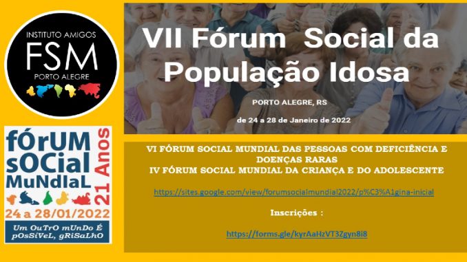 De 24 a 28 de janeiro de 2022, em Porto Alegre, o 7º Fórum Social Mundial da População Idosa