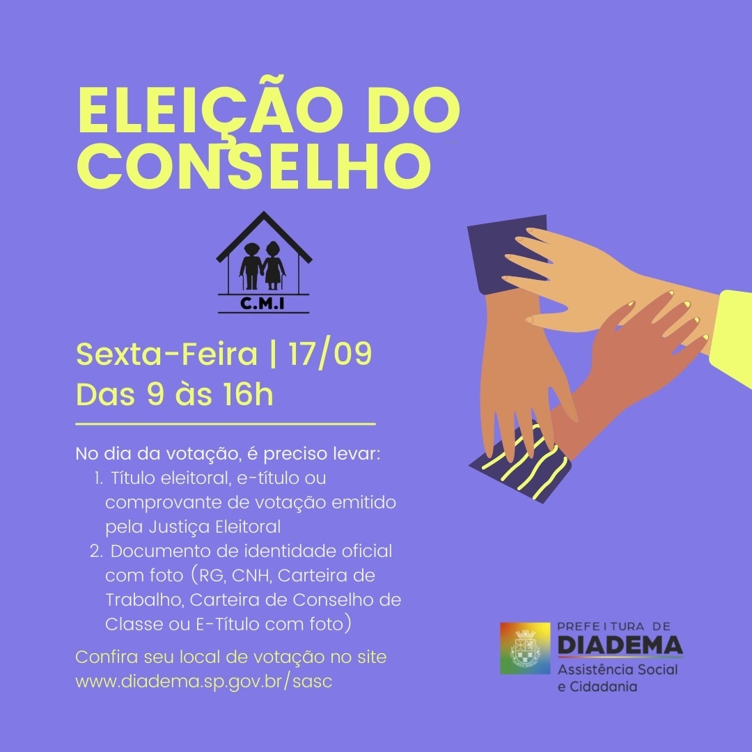 A eleição do CMI é de suma importância para garantir o exercício democrático, e a participação cidadã. Todos acima de 18 podem votar, afinal o envelhecimento é uma realidade, e quanto mais temos esta consciência, maior deve ser a motivação para participar da construção de políticas sociais que atendam a essa realidade, disse a psicóloga Érica Prudente, representante do Instituto de Ação Social Enéas Tognini, que está a frente do CMI Diadema desde 2018. (seu mandato terminou no ano passado e foi prorrogado devido à pandemia).