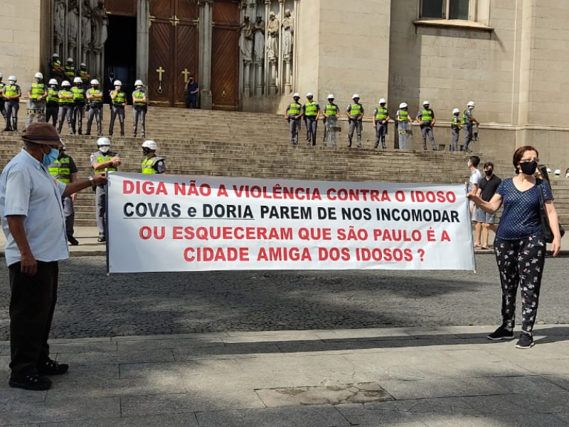 Não conseguiram ficar nas escadarias, como pretendiam, porque na frente da Catedral da Sé tinha um grande esquema de segurança e estava rodeada de policiais.