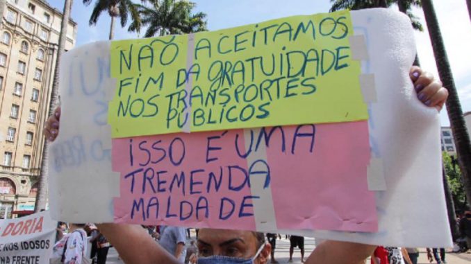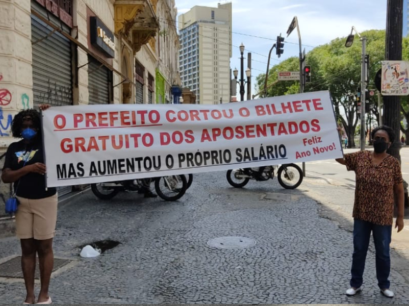 Eles foram marcar o repúdio da população, pela decisão, do governo estadual e municipal, pela retirada da gratuidade nos transportes públicos, para os idosos que estão na faixa dos 60 a 64 anos.