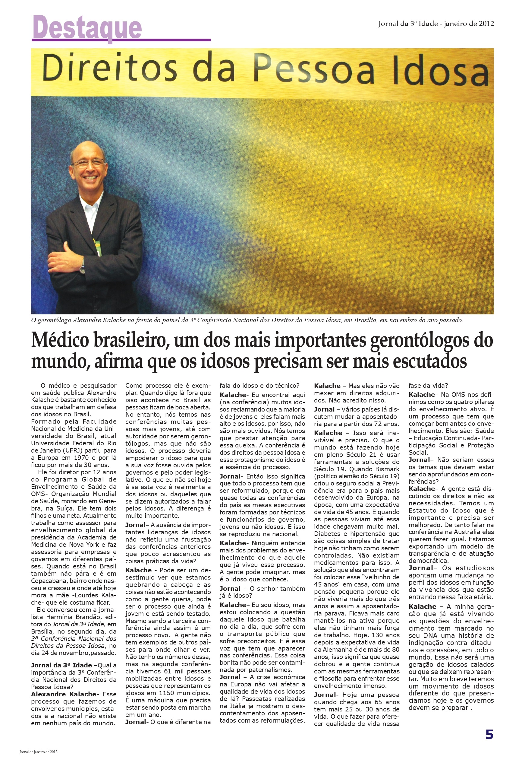 Entrevista Alexandre Kalache na edição impressa do Jornal da 3ª Idade de 2012 14/02/2022 Hermínia Brandão ENTREVISTAS COLEÇÃO 0 Alexandre Kalache