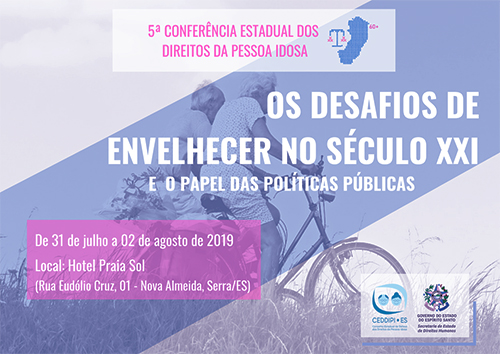 O Cedippi- Conselho Estadual de Defesa dos Direitos da Pessoa Idosa e a Secretaria de Estado de Direitos Humanos abrem hoje, a V Conferência Estadual dos Direitos da Pessoa Idosa do Espírito Santo que vai até a próxima sexta-feira 2 de agosto, no Hotel Praia Sol, localizado em Nova Almeida, no município de Serra.