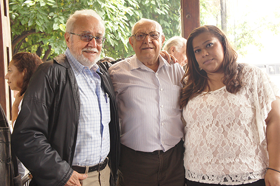 SONY DSC Vice-Presidente, Edmundo Picasso Prado, presidente Oswaldo Lourenço e a secretaria da sede do SINTAPFER, Foto: Jornal da 3a Idade
