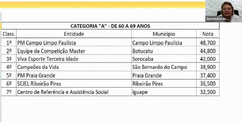 A Secretaria de Esportes do Estado de São Paulo realizou na última quarta-feira, 15/12, à noite, de forma online, o Festival de Coreografia da Melhor Idade.