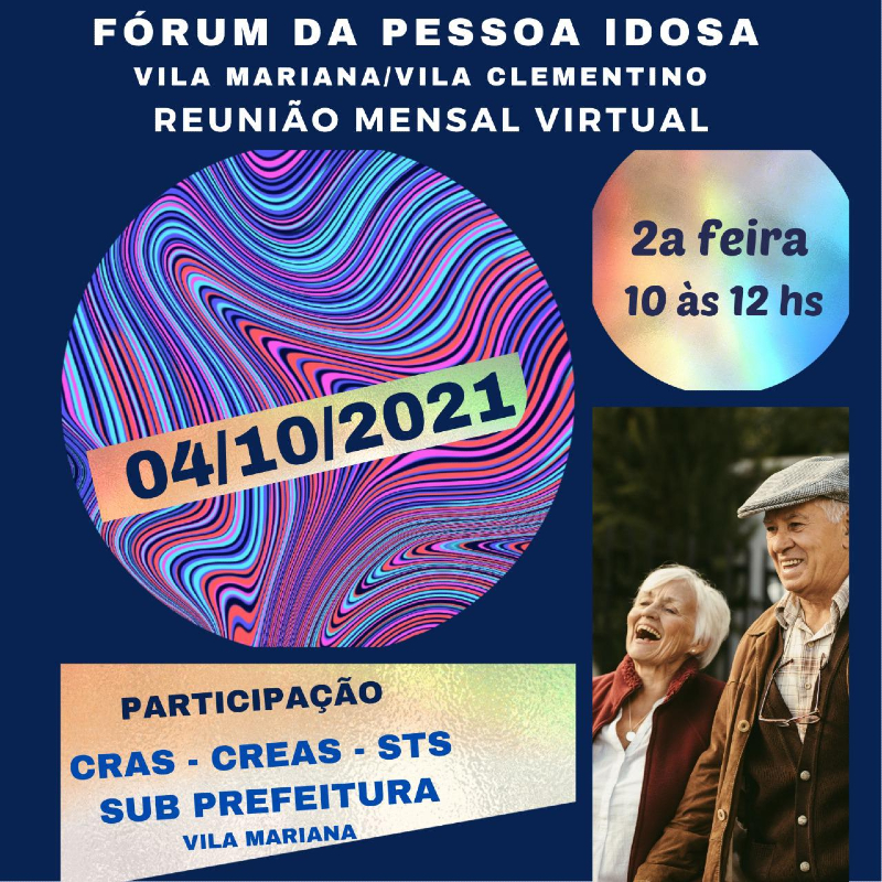 Fórum da Pessoa Idosa da Vila Mariana e Vila Clementino faz hoje sua reunião de outubro 04/10/2021 Hermínia Brandão Vila Mariana e Região- Capital SP 0 O Fórum da Pessoa Idosa da Vila Mariana e Vila Clementino, da Zona Sul da Capital, em São Paulo, faz hoje, segunda-feira, 4/10, o seu encontro de outubro, às 10 horas, ainda no formato virtual. O link estará aberto para quem quiser participar. https://meet.google.com/crm-ygef-qib Fórum Vila Mariana