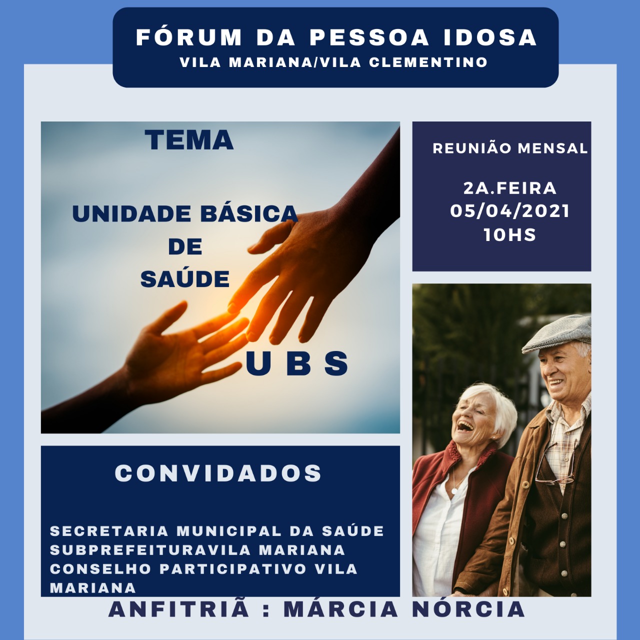 Fórum da Pessoa Idosa da Vila Mariana e Vila Clementino marcou reunião de abril para 5/4 31/03/2021 Hermínia Brandão CONSELHOS E FÓRUNS DE IDOSOS SP, Vila Mariana e Região- Capital SP 0 O Fórum da Pessoa Idosa da Vila Mariana e Vila Clementino, da Zona Sul da Capital, em São Paulo, marcou para 5 de abril, às 10 horas, a sua próxima reunião virtual. https://meet.google.com/vme-adfe-bav Fórum Vila Mariana