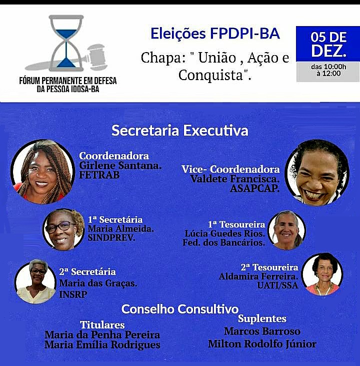 O Fórum Permanente em Defesa da Pessoa Idosa da Bahia, que no próximo mês completará 19 anos, elegeu na manhã da segunda-feira 5 de dezembro, a sua nova diretoria para 2023.
