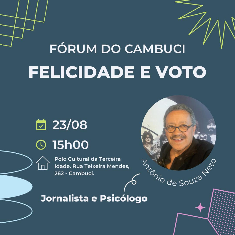 Fórum do Cambuci, vai discutir Felicidade e Voto no encontro de 23/8