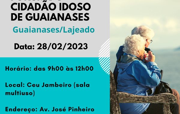 Fórum do Idoso de Guaianases e Lajeado, da Zona Leste, marcou sua primeira reunião de 2023 25/02/2023 Hermínia Brandão CONSELHOS E FÓRUNS DE IDOSOS SP, Guaianases e Região - Capital SP 0 O Fórum do Cidadão Idoso de Guaianases e Lajeado, na Zona Leste da Capital, em São Paulo, faz na próxima terça-feira, 28 de fevereiro, das 9 às 12 horas, no CEU Jambeiro, na Av. José Pinheiro Borges nº 60 o seu primeiro encontro de 2023. Fórum do Idoso Guaianases/LajeadoGuaianases