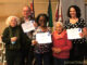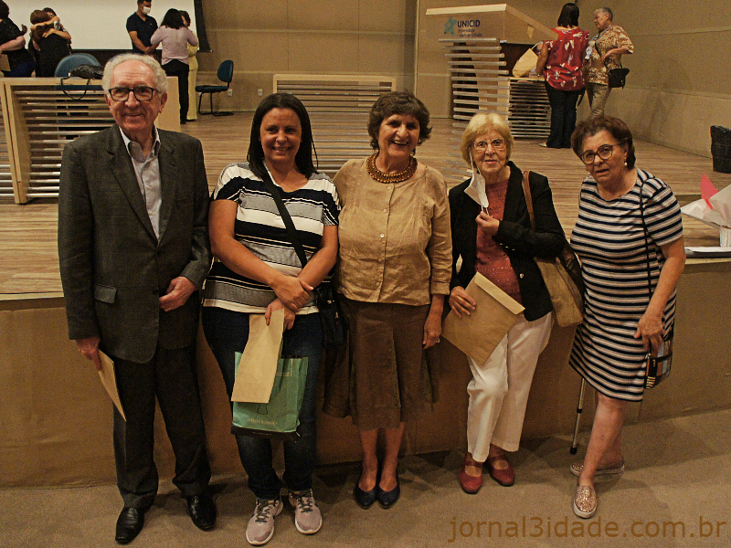 Coordenador do Interfórum, Ariovaldo Guello, Tatiana Feitosa (filha da Marly),Maria do Carmo Guido, do Fórum Butantã, Maria Aparecida Caprino, do Fórum de Pinheiros e Marly Feitosa, ex-presidente do CMI-SP, uma das fundadoras do Fórum Butantã, agora morando na Zona Sul. Foto:jornal3idade.com.br