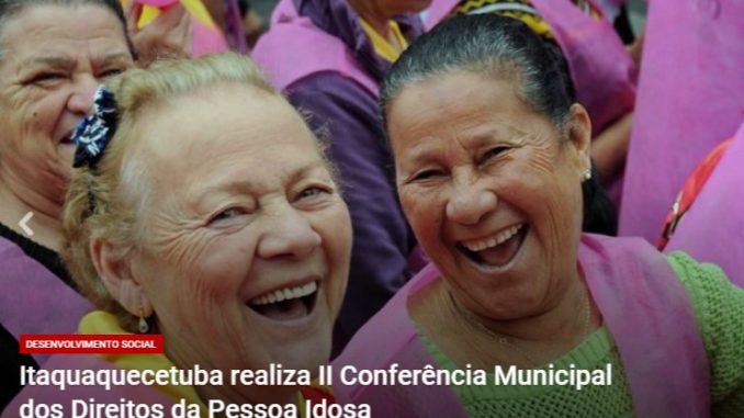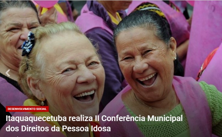 Itaquaquecetuba, na Grande São Paulo, realiza hoje a sua 2ª Conferência Municipal dos Direitos da Pessoa Idosa nas dependências da Igreja de Jesus Cristo dos Santos dos Últimos dias, das 9 às 15 horas, na Rua Araxá, 141, na Vila Virgínia.