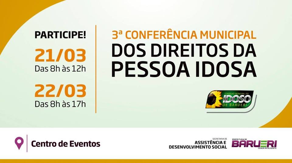 A cidade de Barueri, na Grande São Paulo realiza hoje e amanhã a sua 3ª Conferência Municipal do Idoso, no auditório do Parque da Maturidade José Dias da Silva.