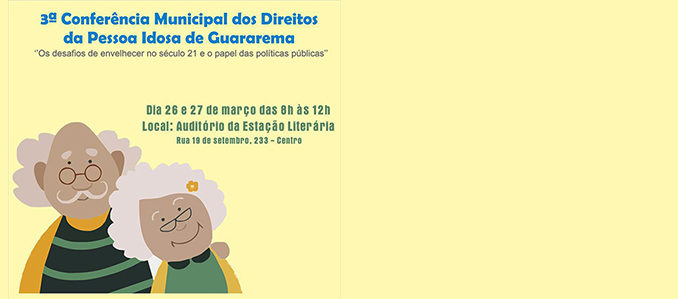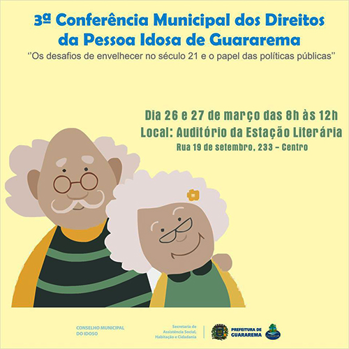 Guararema, que fica no Vale Paraibano Paulista, realiza hoje e manhã a sua 3ª Conferência Municipal dos Direitos da Pessoa Idosa.