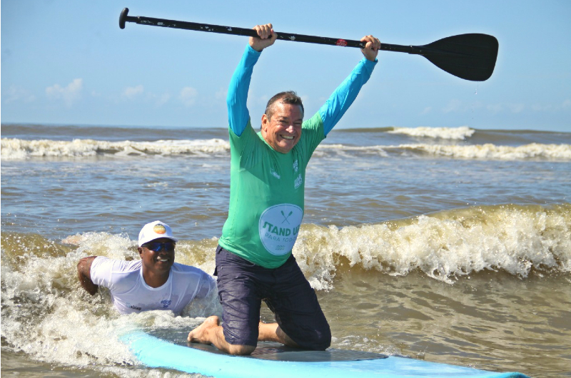 Ilha Comprida, SP, proporcionou aulas de Stand-Up no mar, para idosos 70+