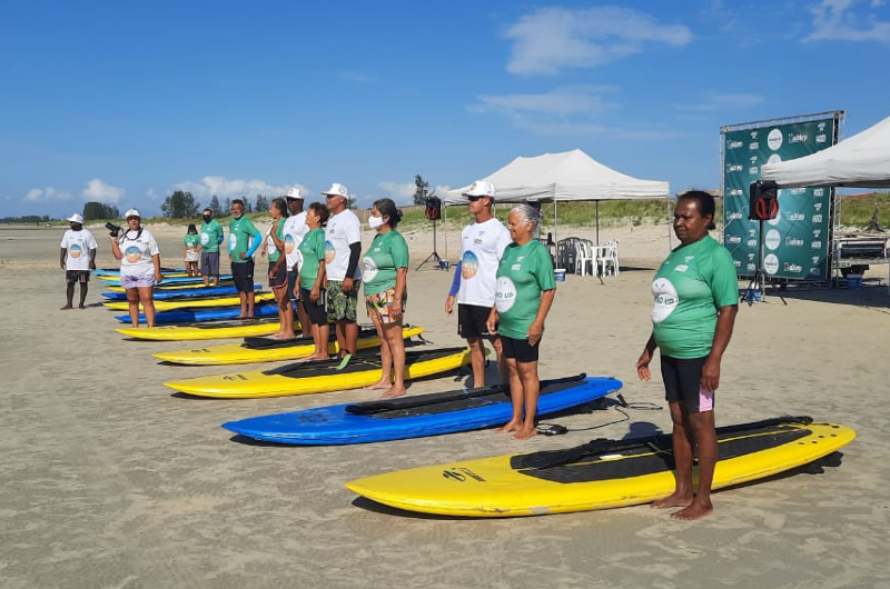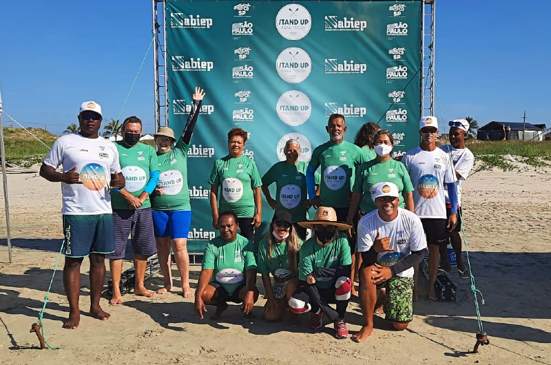 Ambos estavam no grupo de 13 pessoas idosas que participaram de uma clínica oferecida aos usuários do CCMI- Centro de Convivência da Melhor Idade de Ilha Comprida, no no Projeto Stand Up para Todos, um trabalho socioesportivo idealizado pela ABIEP – Associação Brasileira de Esportes com Prancha, com suporte da Prefeitura Municipal de Ilha Comprida, apoio da Alma Surf e financiamento  da Secretaria de Esportes do Estado de São Paulo, através de chamamento público.