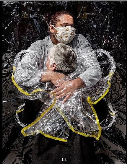 A imagem retrata o primeiro abraço entre Rosa Luzia Lunardi, de 85 anos e a enfermeira Adriana Silva da Costa Souza. A fotografia foi publicada no jornal Politiken, da Dinamarca, em 28 de agosto de 2020.