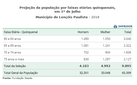 Projecao populacao 2018
