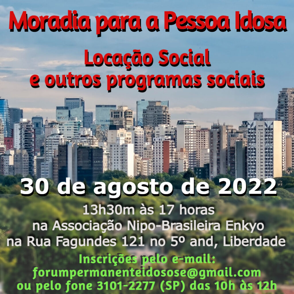 O Fórum Permanente de Políticas Públicas para a Pessoa Idosa da Região Centro e o GARMIC-Grupo de Articulação para Moradia de Idosos da Capital vão realizar no dia 30 de agosto de 2022 um miniseminário que vai debater o direito a moradia da pessoa idosa. A locação social como política pública para resolver grande parte da demanda existente na cidade de São Paulo, será um dos programas discutidos.