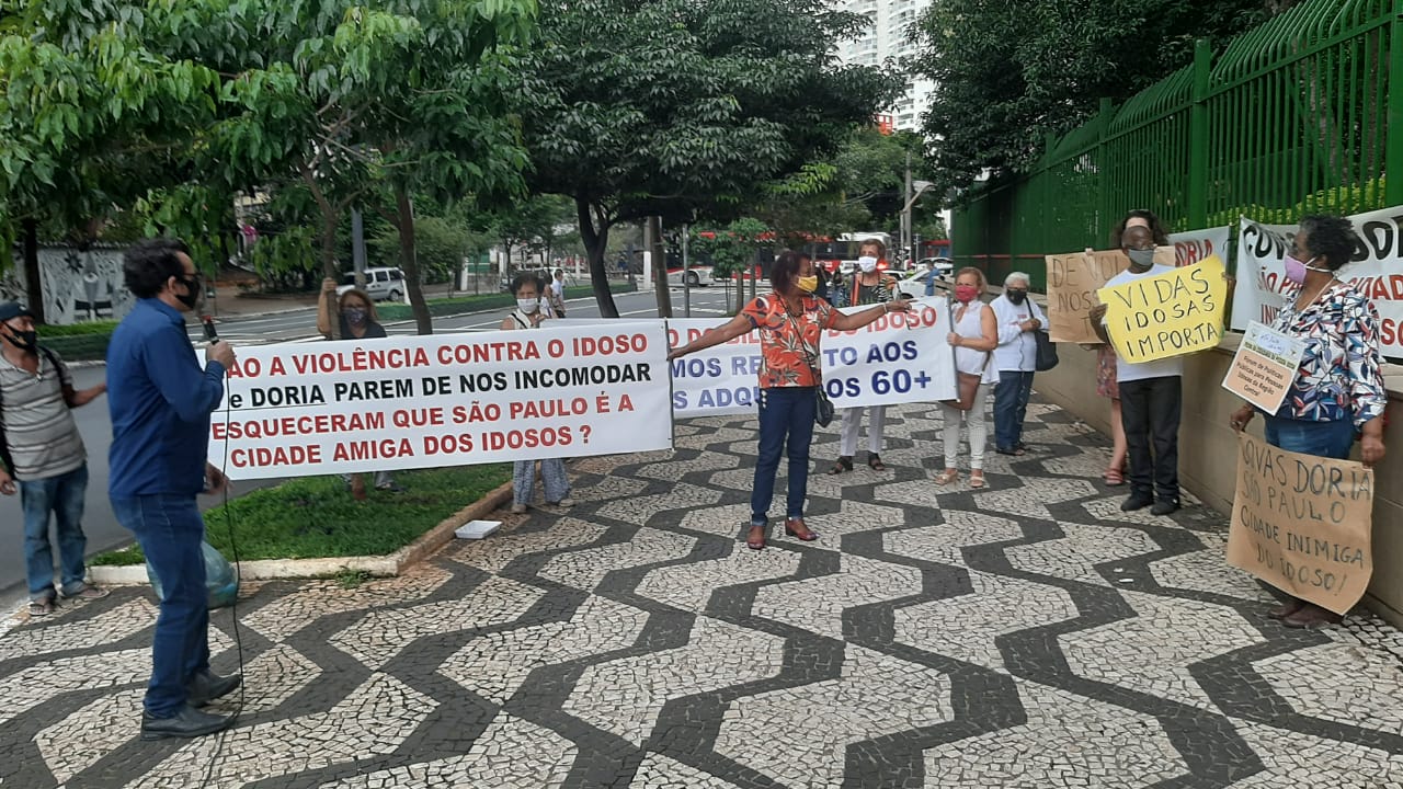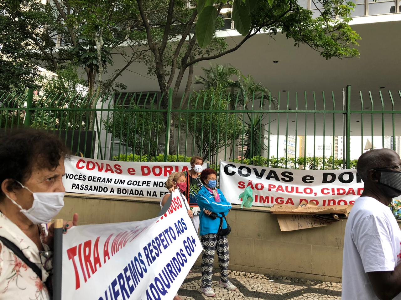 No momento em que o Prefeito de São Paulo Bruno Covas tomava posse dentro da Câmara Municipal, na tarde do primeiro dia de 2021, do lado de fora, um grupo de idosos fazia uma manifestação contra a suspensão da gratuidade na passagem de ônibus, para idosos de 60 a 65 anos.