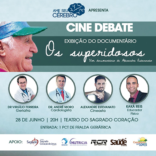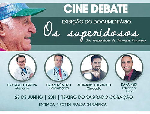 Hoje a noite na cidade de Marília, às 20h no Teatro do Sagrado Coração, um evento debate a importância do envelhecimento saudável, com a exibição do documentário Os Superidosos, num evento organizado pelo projeto Ame Seu Cérebro, que vem sendo realizado pelo médico geriatra Virgílio Ferreira.